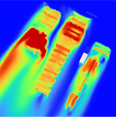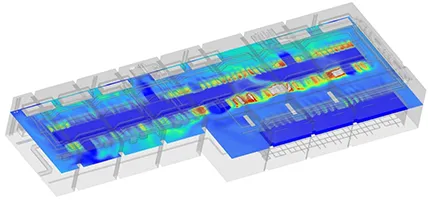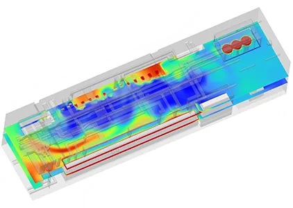 These simulations offered valuable observations regarding cooling challenges and hot spots both inside and outside the Data Centers. Identifying areas with temperatures above optimal thresholds contributed to a more efficient thermal design for a large-scale and demanding project.