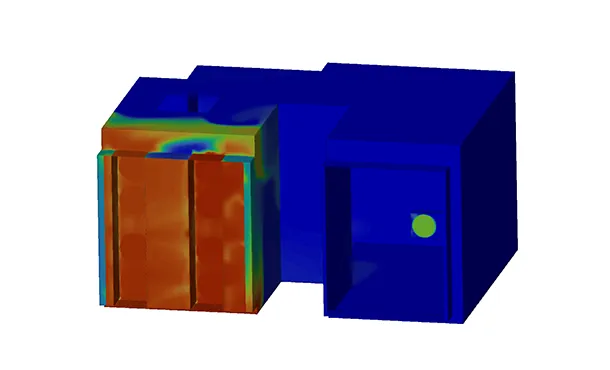 The ventilation and cooling of a power generation facility in the Libyan desert were simulated by SIMTEC. The excessive solar heat adds design challenges, as it must be removed along with the heat produced by the three diesel engines.