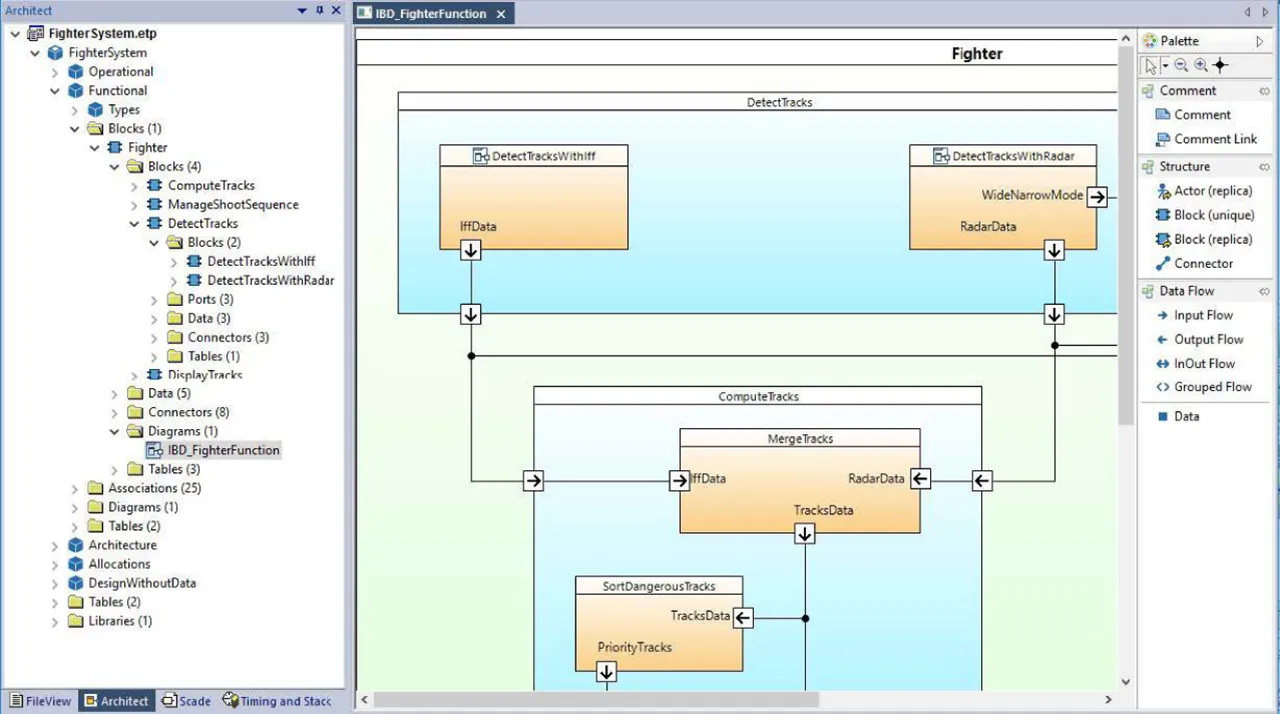 Ansys SCADE Architect® simplifies the design and verification process for critical systems by providing a unified environment for modeling and simulating system architectures.